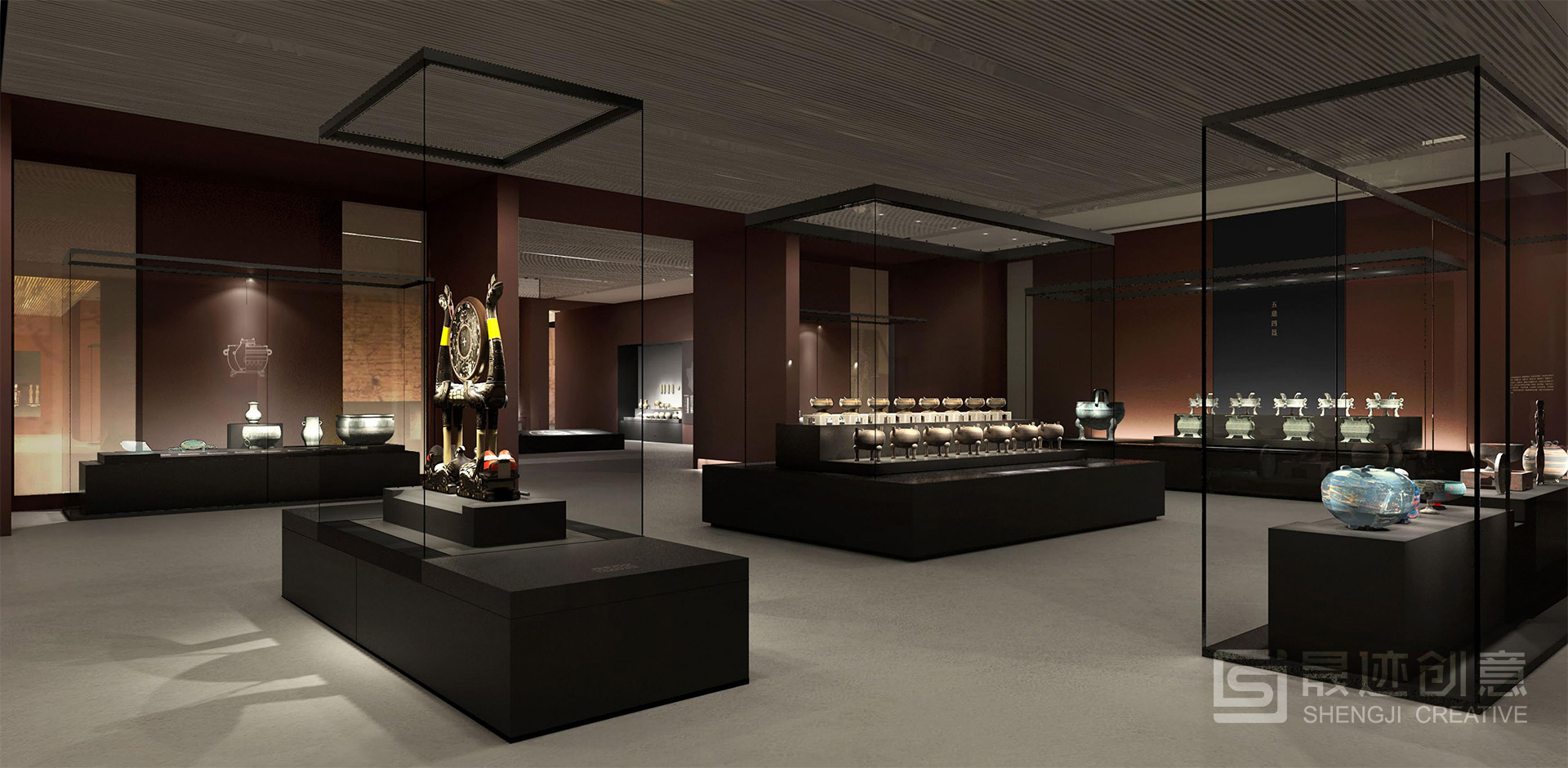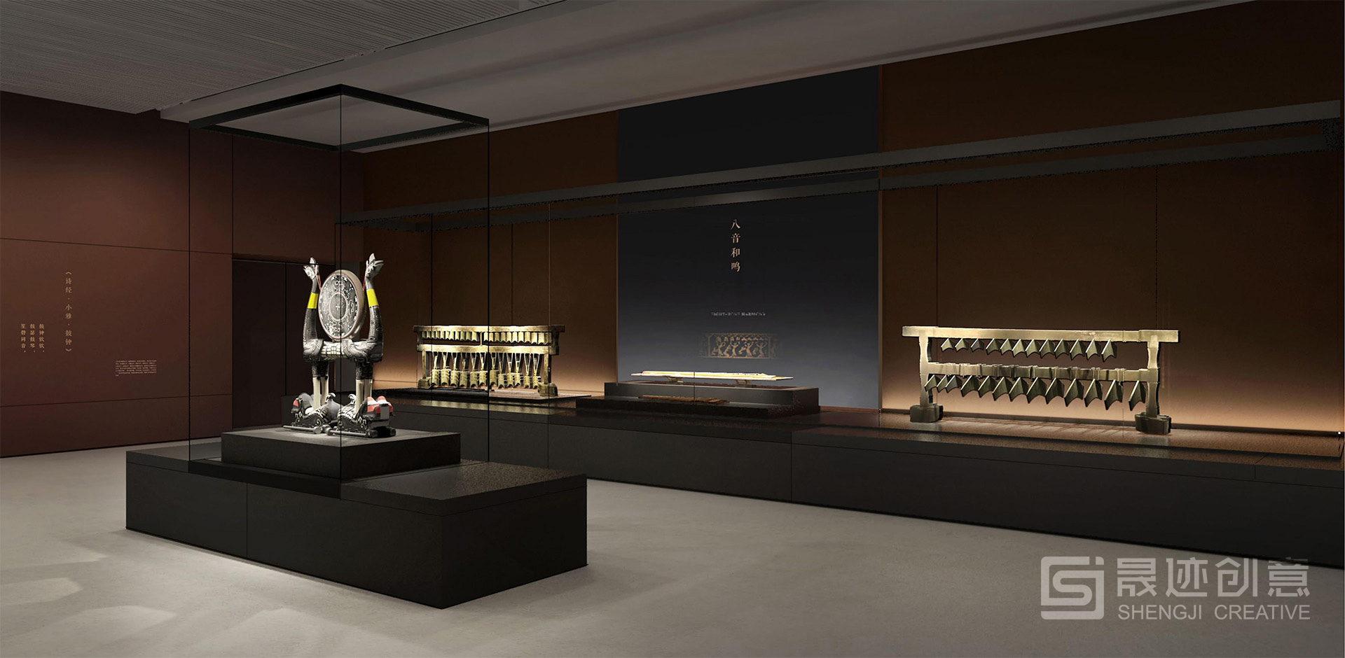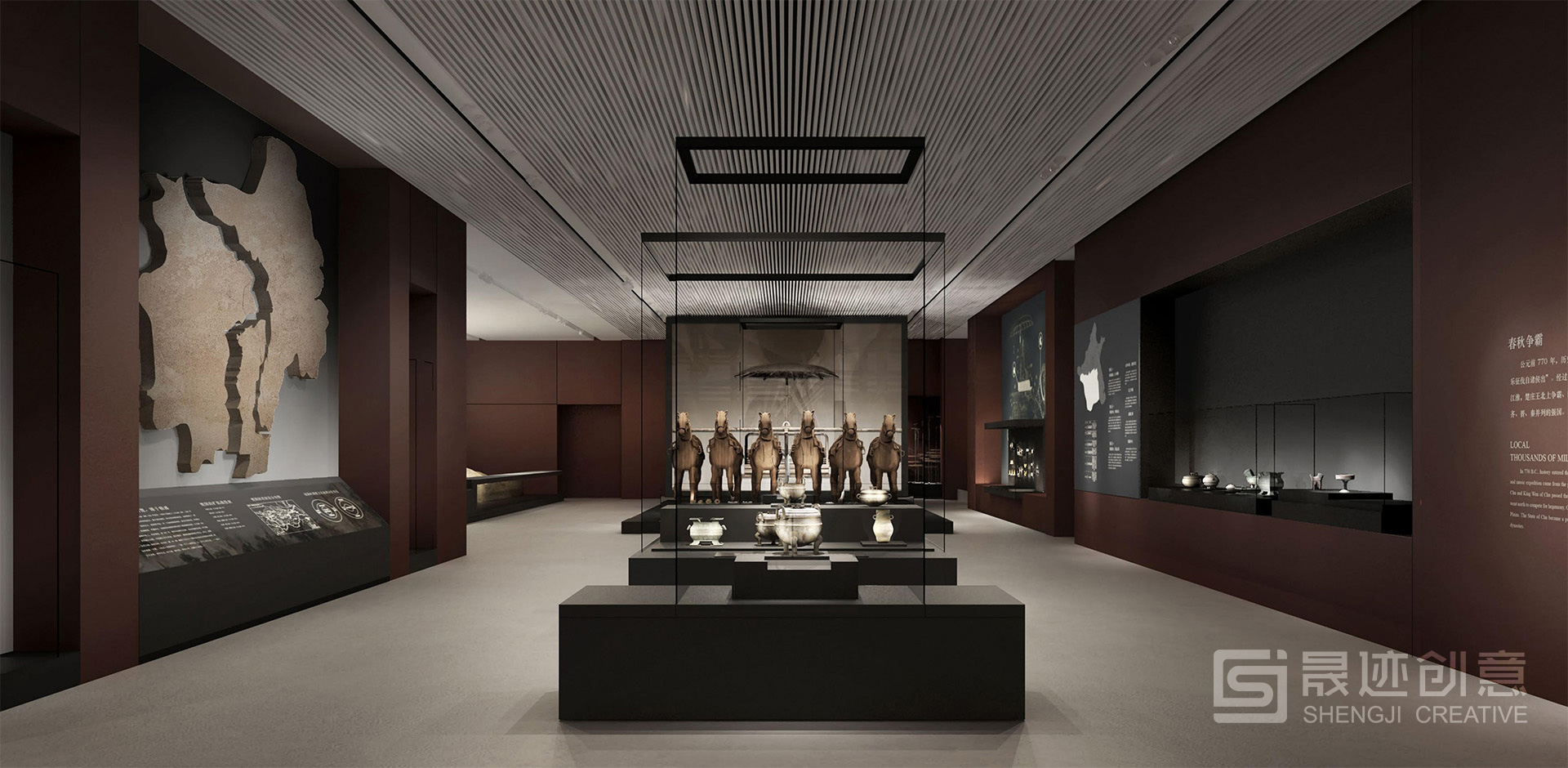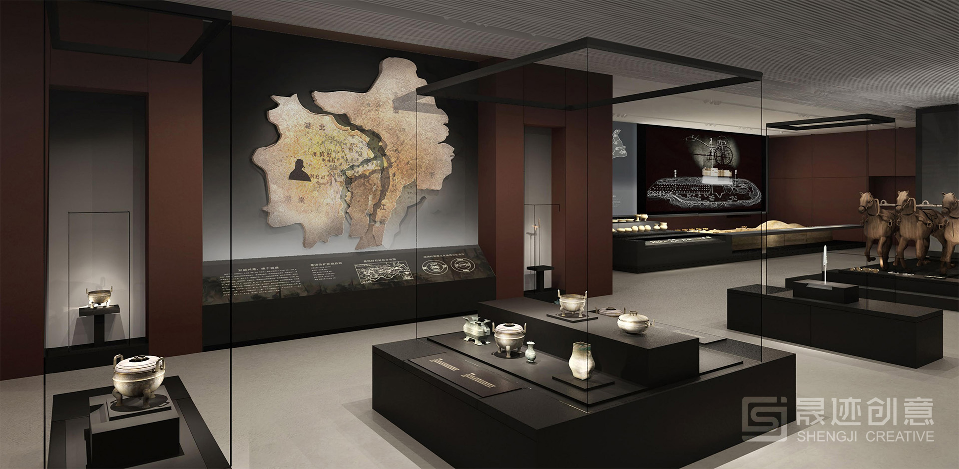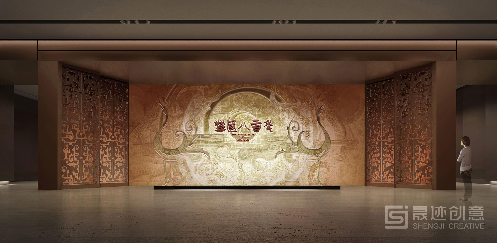 湖北省博物馆“楚国八百年”陈列展览主题为“辉煌灿烂的楚文化”,在设计上突出楚风楚韵,以楚国漆器常见的红色为主色调。序厅的大型浮雕以最具特色的楚国文物——虎座鸟架鼓为主要元素。展厅风格既体现了楚国历史的厚重,又凸显了艺术的丰富绚丽。 展览主体分为四个部分:开疆拓土、礼俗百业、文思妙理、精彩绝艳。设计上突出楚风楚韵,以楚国漆器常见的红色为主色调。