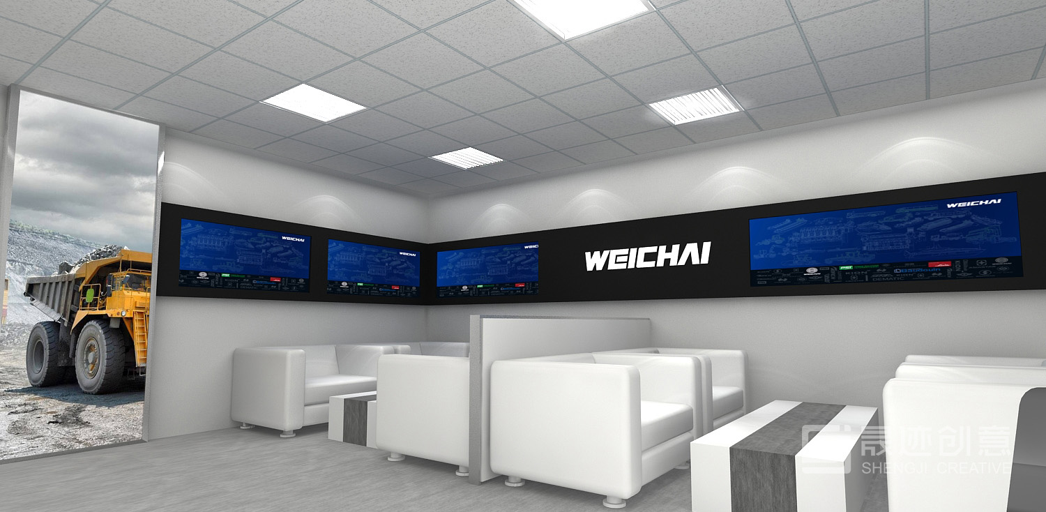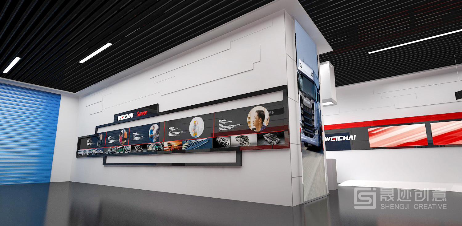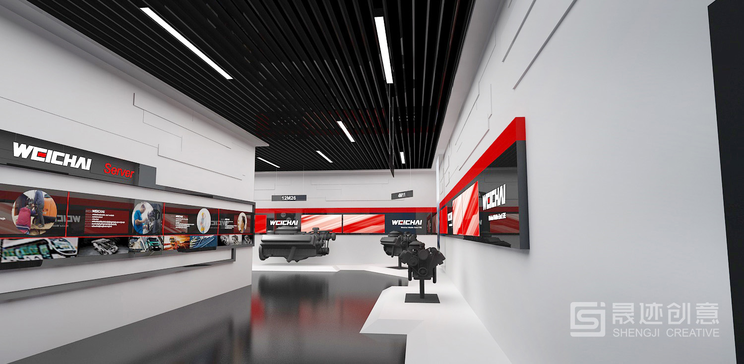 潍柴产品展厅用特有的空间语言诠释潍柴文化,注重将建筑元素、企业文化与空间艺术完美结合,将“动力”概念通过现代美学的设计语言表现出来,设计风格简约、大气,尊崇“以人为本”的原则和“低碳环保”的理念,着重体现设计的人性化、个性化、智能化,结合实物、多媒体、高科技互动等展示手段,共同塑造出潍柴动力的国际化形象。