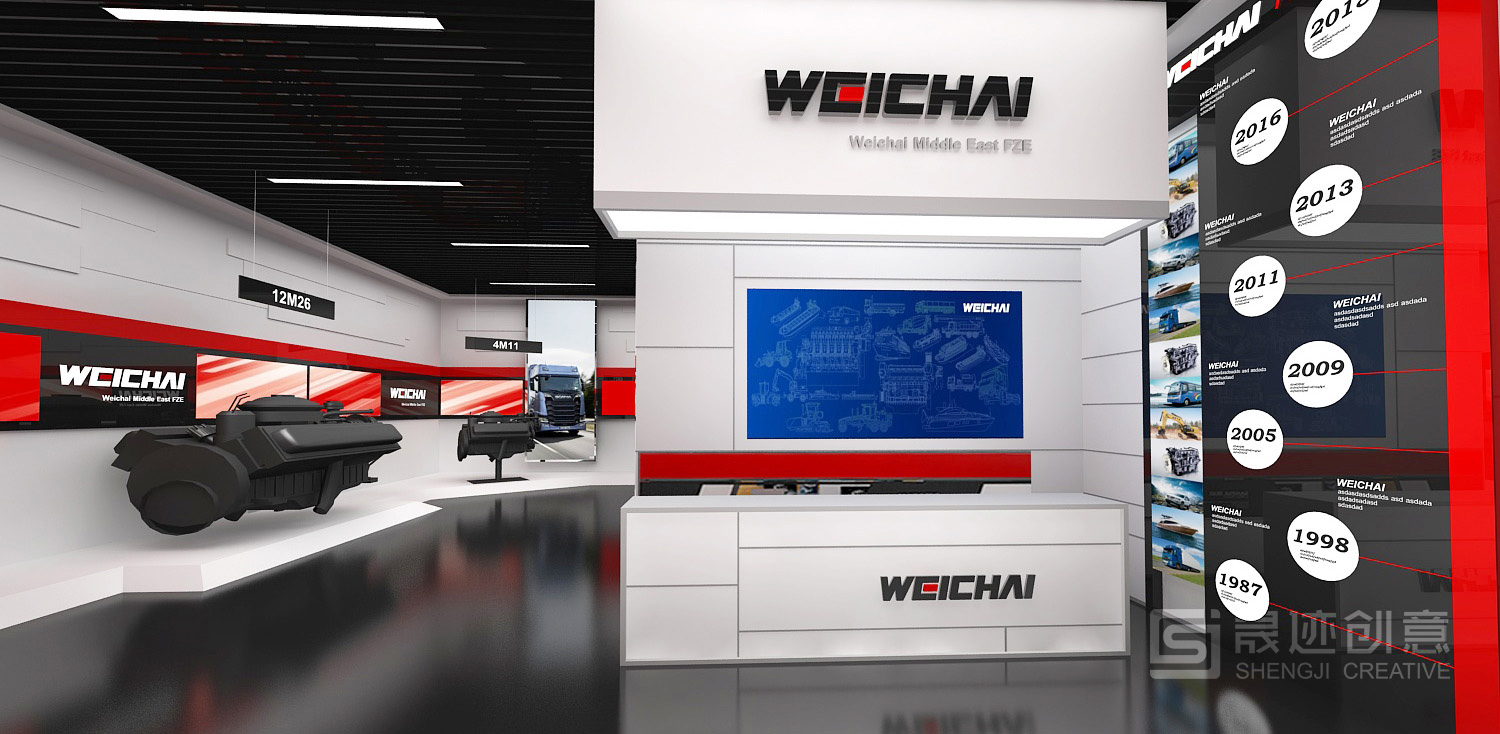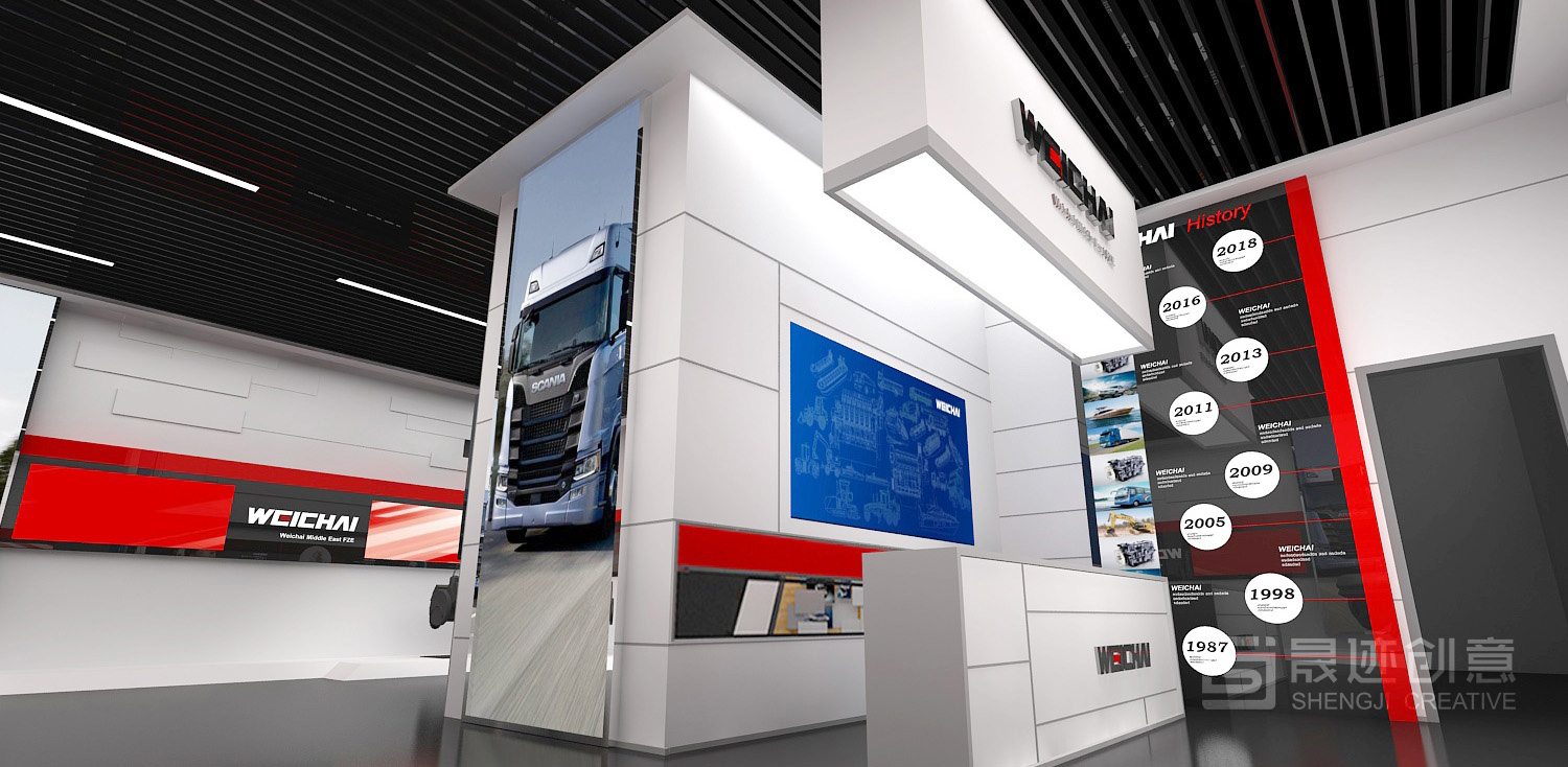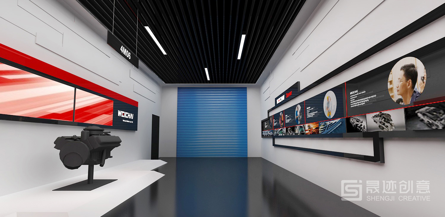 潍柴产品展厅用特有的空间语言诠释潍柴文化,注重将建筑元素、企业文化与空间艺术完美结合,将“动力”概念通过现代美学的设计语言表现出来,设计风格简约、大气,尊崇“以人为本”的原则和“低碳环保”的理念,着重体现设计的人性化、个性化、智能化,结合实物、多媒体、高科技互动等展示手段,共同塑造出潍柴动力的国际化形象。