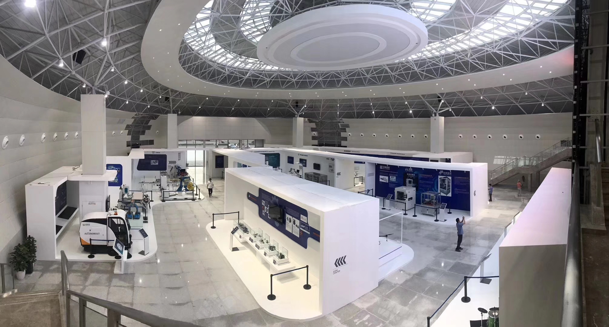2019年10月16日,江苏省海安市机器人科技馆开馆,正式对客商、外商及游客开放。该机器人展馆是由20多家高科技机器人企业组成,是集科、工、贸一体的系列机器人产业园。展馆采用大空间、大格局的分割方式,通过地面的高低错落营造不同区域的内容和视觉。大厅入口,使用导览图即可纵观全馆。金属质感的媒体机键表现高科技感和现代感。馆内采用弧幕、滑轨、大屏等多媒体展现形式来配合整馆简洁、科技感、现代化的风格。