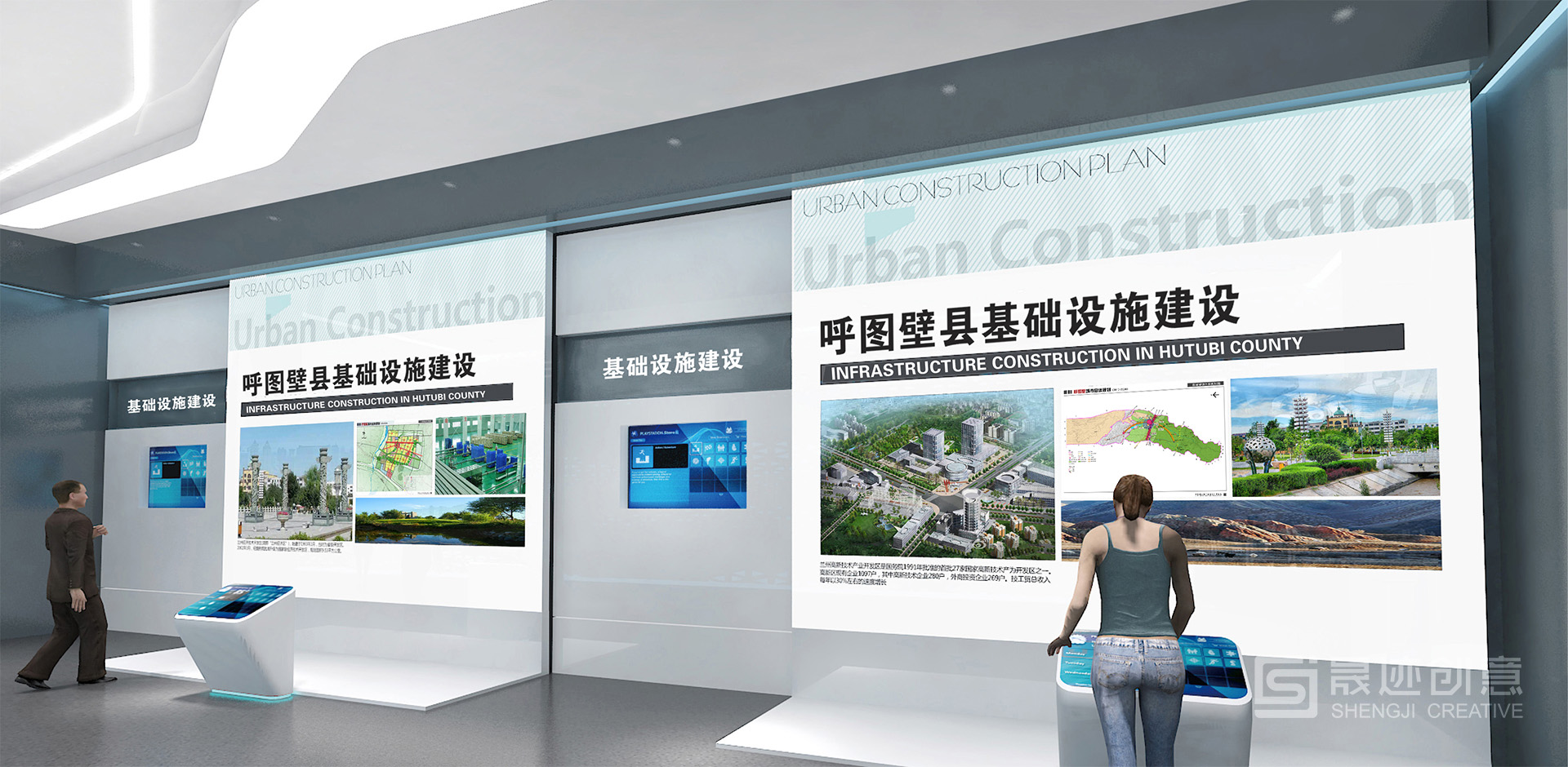 呼图壁规划馆以城市建设历程为主轴,通过各种展示形式,如图片、文字、模型、多媒体等,让参观者了解呼图壁从过去到现在的城市发展脉络。