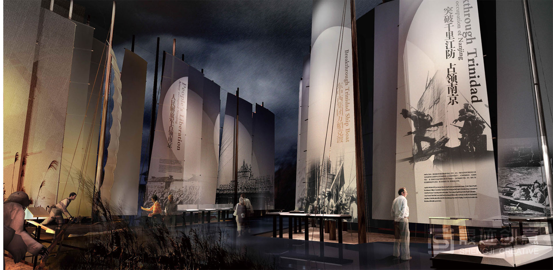 合肥渡江战役纪念馆陈列反映了渡江战役全过程,再现了“打过长江去,解放全中国”的篇章。《百万雄师过大江》陈列以渡江战役进程为主线,包括战前中国国内/国外形势、战役的决策和部署、战役经过、历史意义,展示了中共中央和总前委的运筹帷幄、人民支前等重要内容